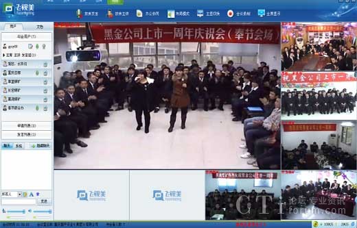 首先,飛視美為總部及5個辦事處分別安裝了飛視美視頻會議軟件,將慶典場地劃分為1個主會場和5個分會場,總部與分支機構(gòu)的員工都在當?shù)貐⒓討c典,通過飛視美進行在線演講與總結(jié)、相互問候、相互祝福、表演節(jié)目、進行互動游戲等,這是一種“高科技互動”。其次,為了達到更好的視頻溝通效果,飛視美為黑金實業(yè)量身定制了一套硬件設(shè)備方案。根據(jù)各會場的面積、參與人數(shù)等情況,提供了一整套硬件參考:包括攝像設(shè)備、音響設(shè)備、功效設(shè)備等,并派出技術(shù)團隊專門赴重慶為客戶進行設(shè)備搭建和調(diào)試,保障了此次慶典的最佳效果。