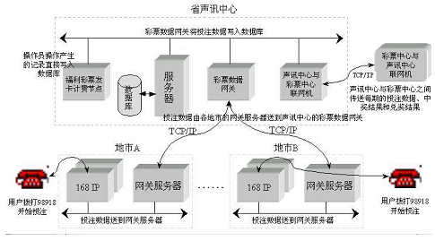 聲訊中心通過與彩票中心的聯(lián)網(wǎng)機(jī)定時(shí)地在開獎(jiǎng)前把每期彩票投注數(shù)據(jù)傳送給彩票中心;彩票中心在開獎(jiǎng)后把中獎(jiǎng)號(hào)碼、各等獎(jiǎng)的數(shù)目、獎(jiǎng)金金額等數(shù)據(jù)傳送到聲訊中心,聲訊中心將中獎(jiǎng)號(hào)碼和各等獎(jiǎng)金金額存入數(shù)據(jù)庫并根據(jù)中獎(jiǎng)號(hào)碼開獎(jiǎng),生成中獎(jiǎng)記錄,通過核對(duì)中獎(jiǎng)數(shù)目后,電信營(yíng)業(yè)部門可以開始兌獎(jiǎng)。聲訊中心每期將兌獎(jiǎng)結(jié)果傳送到彩票中心備案。