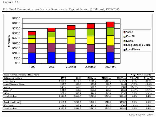電信市場不是一個孤立的市場,而是由電信服務(wù)和電信制造兩個緊密相連的市場組成的。電信制造業(yè)不斷進行研發(fā)創(chuàng)新,為電信服務(wù)業(yè)提供新的業(yè)務(wù);而電信服務(wù)也利用電信制造業(yè)的新技術(shù),并把這些服務(wù)最終提供給商業(yè)和普通消費者兩類用戶?梢哉f,電信制造業(yè)的發(fā)展在很大程度上是由電信服務(wù)業(yè)決定的。要了解電信制造市場的將來,不得不從電信服務(wù)市場的變化談起!