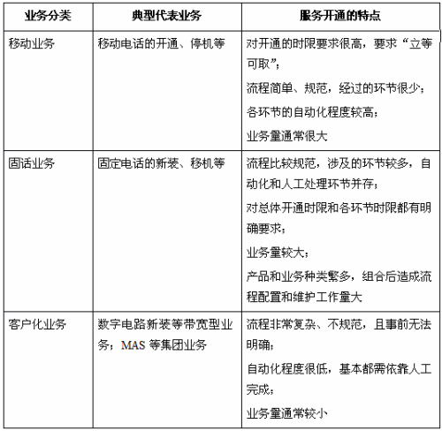 表-1 不同類型業(yè)務(wù)的服務(wù)開通特點(diǎn)