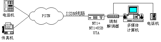 因為NT1+、NT1+USB、UTA都可以提供模擬電話接口,如果用模擬的Modem 將它們和計算機相連,那么用戶利用計算機使用的電話的方式與模擬電話線路是相同的。