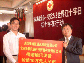 4月,SARS在北京肆無忌彈的橫行,其它國家和地區(qū)也都不同程度地受到SARS的侵害,給人民的生活和工作帶來了極大的影響,人們的身體健康和生命安全受到了威脅。中國紅十字會廣大工作人員對此次疫情迅速響應,為了支持中國中國紅十字會總開展SARS疫情的救助和捐贈工作,幫助其通過現(xiàn)代化的通訊手段快速準確的進行話務處理,以便更好地保護人民的生命和健康,4月30日,奧迪堅通訊系統(tǒng)(上海)有限公司聯(lián)合北京華泰貝通科技貿(mào)易有限責任公司向中國紅十字會總會捐贈了價值約10萬余人民幣的呼叫中心系統(tǒng),軟件以及相關服務,以實際行動幫助中國紅十字會總會抗擊SARS。