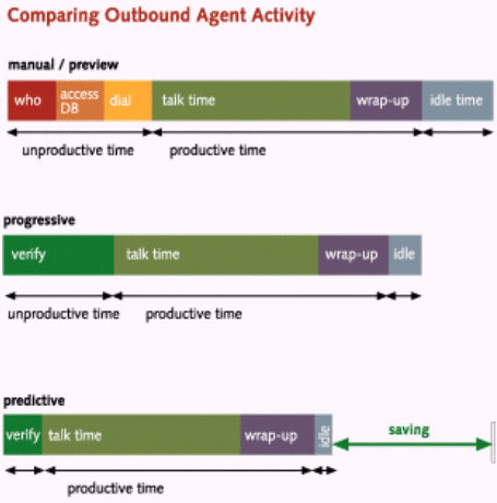 預測撥號 是一種用來在一個短的時段中對大量客戶進行聯(lián)絡的一種先進的步進模式。使用預測撥號,坐席代表僅僅處理成功的呼叫。預測撥號實現(xiàn)了最高水平的效率。預測撥號使用精密復雜的技術預測沒有被應答的呼叫的一個百分比和什么時候坐席代表將完成正在進行著的呼叫。預測撥號將自動撥電話號碼并對其中一些呼叫會失敗做好了準備。使用預測撥號,坐席代表每小時的通話時間大約在40到45分鐘。