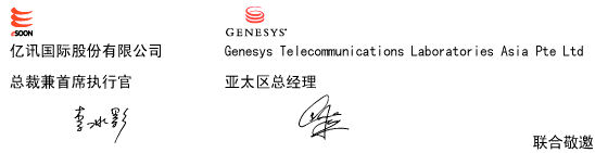 屆時,不僅有Genesys全球總裁率領資深專家向您介紹客戶關系管理領域的市場動向與未來趨勢,還帶來了全球拭目以待、發(fā)熱發(fā)光的Genesys最新產(chǎn)品 ── G7。此外主辦單位更有幸請來兩岸三地知名客戶,提供商務應用實例,共同分享其成功經(jīng)驗,為您的企業(yè)及同行業(yè)提供了相互交流的機會。