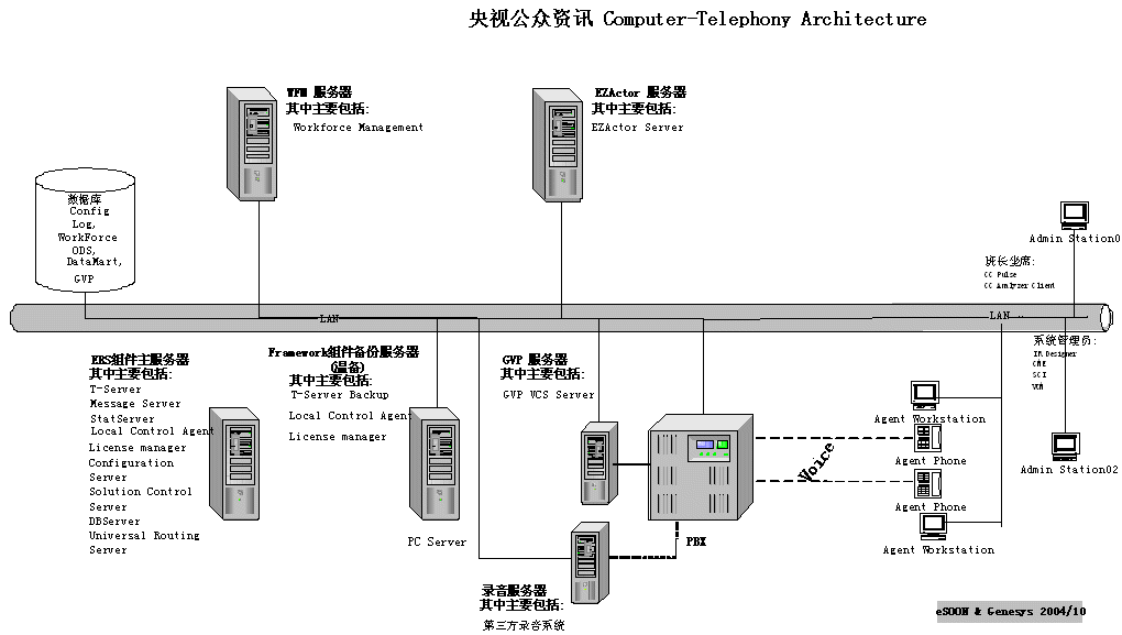 由于簽約時(shí)距離2005年春節(jié)聯(lián)歡晚會只有不足2個(gè)月的時(shí)間,勝利完成春節(jié)聯(lián)歡晚會時(shí)的電話服務(wù)工作就成為CCTV公眾資訊中心和eSOON的最大目標(biāo)。因?yàn)橛脩舨捎昧顺墒斓膃SOON解決方案(CTI-Genesys ERS;IVR-Genesys GVP;CRM-eSOON EZactor),所以整個(gè)系統(tǒng)在短短一個(gè)月內(nèi)就完成了上線工作。在經(jīng)過詳細(xì)的測試及全面的人員培訓(xùn)后整個(gè)系統(tǒng)經(jīng)受住了春節(jié)聯(lián)歡晚會的考驗(yàn),圓滿完成了晚會的電話、短信的支撐工作。徹底擺脫了前幾年系統(tǒng)不堪應(yīng)付突發(fā)大量呼叫的窘境,提升了CCTV公眾資訊有限公司的服務(wù)品質(zhì)。