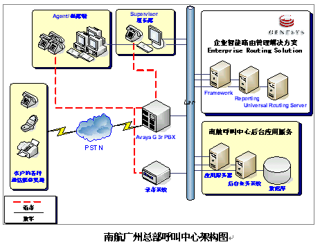eSOON & Genesys為南航提供的解決方案包括:Genesys 平臺架構(gòu)(Framework),以及ERS企業(yè)智能路由解決方案(Enterprise Routing Solution)。建成以廣州為中心,全國分布而集中式接近200坐席的呼叫中心,并于本年開始進行語音/數(shù)據(jù)聯(lián)網(wǎng)。
