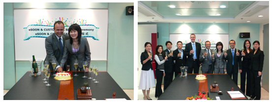 2007年5月16日,億迅中國(guó)軟件有限公司北京分公司的會(huì)議室里花團(tuán)錦簇,eSOON與Customcall公司的簽約儀式在和諧融洽的氣氛中進(jìn)行。雙方先對(duì)未來的合作發(fā)展進(jìn)行了討論,10點(diǎn)58分,億迅公司CEO李冰影女士與澳洲Customcall