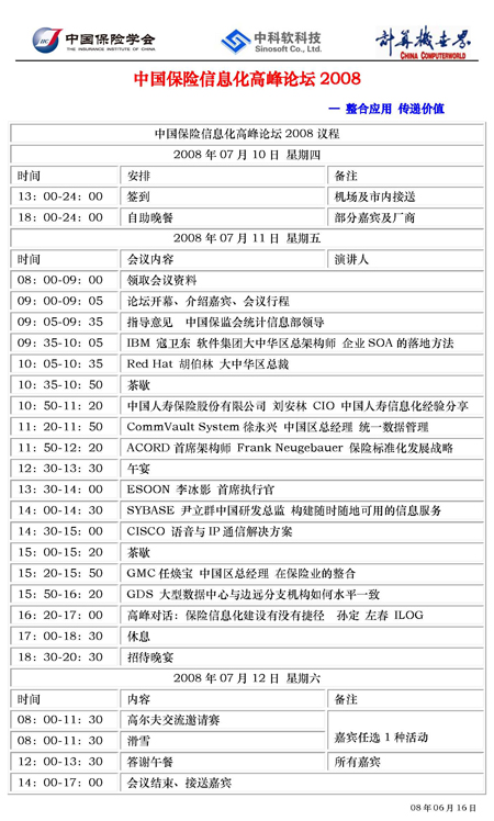 7月10日至12日, 中國(guó)保險(xiǎn)信息化高峰論壇2008將于北京順義區(qū)喬波國(guó)際會(huì)議中心盛大舉行, 此次大會(huì)的邀請(qǐng)來賓有包括中國(guó)人保,太平保險(xiǎn),中國(guó)人壽,中國(guó)太平洋保險(xiǎn),華泰保險(xiǎn),陽光財(cái)險(xiǎn)等保險(xiǎn)業(yè)的最優(yōu)秀的企業(yè)。億迅作為最佳廠商之一,也得到該會(huì)主辦方的盛情邀請(qǐng),屆時(shí)將與各大保險(xiǎn)企業(yè)技術(shù)主管,保險(xiǎn)公司副總經(jīng)理,保監(jiān)會(huì)相關(guān)領(lǐng)導(dǎo)以及資深保險(xiǎn)行業(yè)信息化建設(shè)專家共同聆聽來自保監(jiān)會(huì)領(lǐng)導(dǎo)的指導(dǎo)性意見,交流重要企業(yè)的優(yōu)秀解決方案,分享系統(tǒng)集成商的最直接方案對(duì)比。會(huì)議期間,億迅公司大中華區(qū)執(zhí)行副總張佑佶先生將有一個(gè)演講時(shí)段,與保險(xiǎn)業(yè)的新老朋友共同研討“呼叫中心信息化在兩岸三地的魅力趨勢(shì)”,全情期待中……
