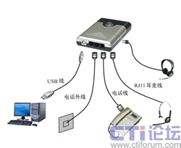 “話務通”設計新穎,接口包括電話線路接口、電話機接口、耳機接口和USB通信接口。配置立體聲揚聲器和環(huán)型提示燈,提供聲光提示。“話務通”能夠提供IP網(wǎng)絡電話,自動應答,自動外撥,來電彈屏,語音錄放,語音留言等功能。
