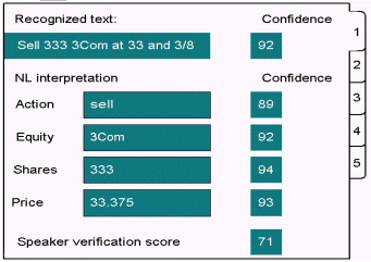 通過Nuance系統(tǒng)可以開發(fā)自然語言理解系統(tǒng),它以句子為輸入,返回句子意義的解釋性表達(dá)。應(yīng)用程序可以根據(jù)用戶的請(qǐng)求采取相應(yīng)的動(dòng)作。Nuance系統(tǒng)也提供基于檔次的置信評(píng)分,它能更加接近地判別可能準(zhǔn)確(或不準(zhǔn)確)識(shí)別的短語各部分。然后可更加自然和有效地修改應(yīng)用程序,處理錯(cuò)誤檢查或重新提示。
