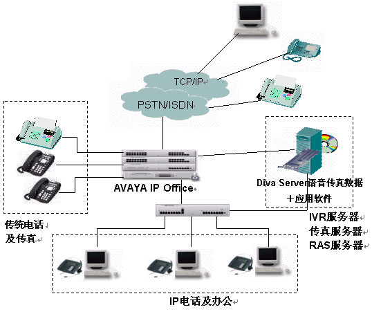 Avaya™ IP Office 是語音/數(shù)據(jù)融合的平臺(tái),可實(shí)現(xiàn)對(duì)普通電話和傳真的數(shù)字化及VOIP轉(zhuǎn)換。IP Office的性能配置適用于端對(duì)端IP網(wǎng)絡(luò),也可在電路交換網(wǎng)絡(luò)中發(fā)揮作用,它提供了豐富的語音功能、強(qiáng)大的數(shù)據(jù)處理能力、呼叫分配功能以及除IP之外與T1、E1、模擬線路等的連接功能。IP Office通過對(duì)H.323等開放標(biāo)準(zhǔn)的支持,可與整合通訊服務(wù)器上的呼叫中心相應(yīng)的接入呼出模塊連接,實(shí)現(xiàn)PSTN上的電話和傳真接入以及系統(tǒng)語音和傳真向PSTN的輸出。