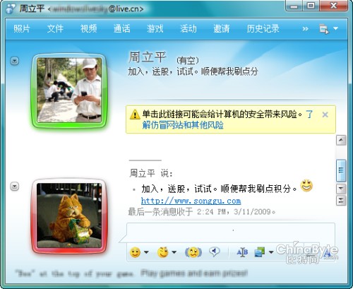 通常來說,用戶成為垃圾信息的目標(biāo)主要源于用戶泄露賬戶信息。一些未經(jīng)微軟認(rèn)證的第三方網(wǎng)站在會員注冊程序中為盜取用戶MSN賬號及密碼設(shè)下一個圈套,即要求注冊者提交MSN賬號和密碼。網(wǎng)站獲取到MSN用戶賬號和密碼后,通過架設(shè)的“機器人”服務(wù)器(即一種惡意程序,可通過自動勘測方式,獲取用戶賬號密碼),自動登錄該用戶Messenger,并按好友名單自動傳播垃圾信息鏈接。一旦用戶以為是好友發(fā)送的,點擊這個鏈接后,自己的電腦也會感染,會再繼續(xù)自動向其他好友發(fā)送同樣的廣告信息鏈接,就這樣,呈幾何級數(shù)進(jìn)行傳播。