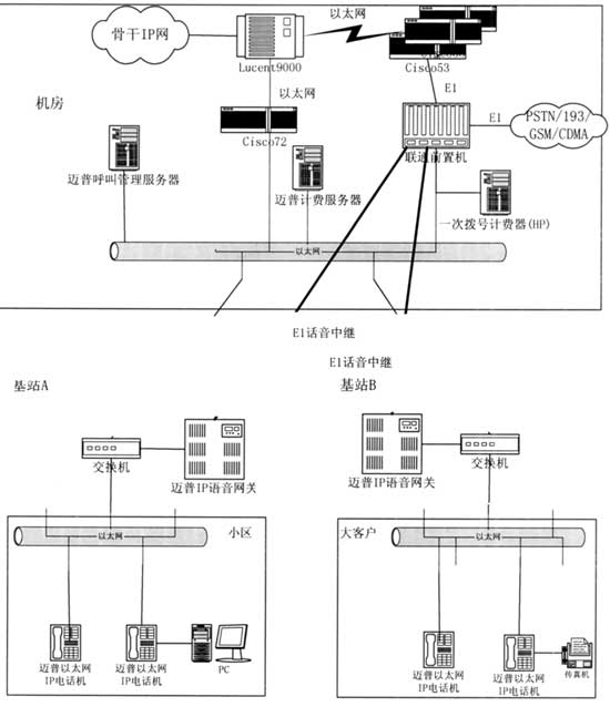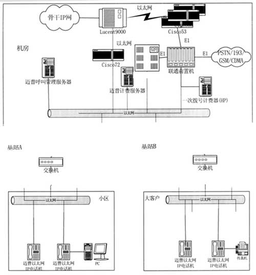 。。在兩個(gè)方案中,采用了邁普呼叫管理服務(wù)器、計(jì)費(fèi)服務(wù)器以及以太網(wǎng)IP電話機(jī),分別擔(dān)任呼叫、話音計(jì)費(fèi)等網(wǎng)絡(luò)管理工作。
