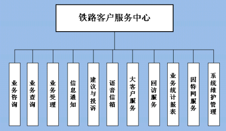 鐵路客戶服務中心系統(tǒng)的業(yè)務功能結(jié)構(gòu)如下圖所示: