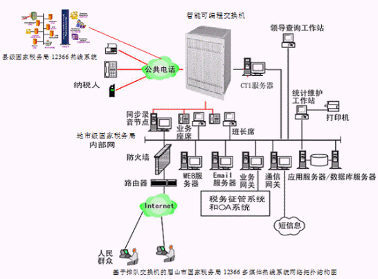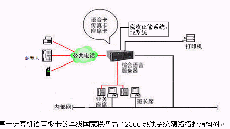 對于縣級國家稅務(wù)局12366多媒體納稅服務(wù)熱線系統(tǒng),則建議使用基于計算機(jī)語音板卡的方式,可以減少投資,同時具有良好的系統(tǒng)性能;對于地市級-縣級國家稅務(wù)局12366多媒體納稅服務(wù)熱線系統(tǒng),可選用排隊(duì)交換機(jī)作為語音接入設(shè)備,以保障系統(tǒng)的高可靠性和穩(wěn)定性;大大提高了系統(tǒng)的適應(yīng)面。