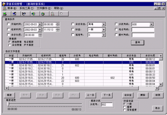 可按通道號、日期、時(shí)間、來電號碼、外撥號碼、重要程度標(biāo)簽等多種條件進(jìn)行復(fù)合查詢。
