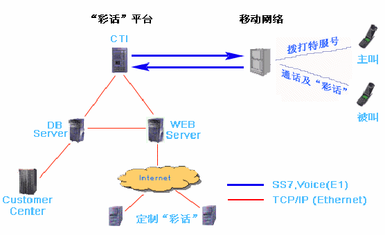 IVR:提供各種"彩話(huà)"、 用戶(hù)通過(guò)撥打IVR定制"彩話(huà)"、 通話(huà)過(guò)程中,用戶(hù)可進(jìn)入IVR點(diǎn)播"彩話(huà)"