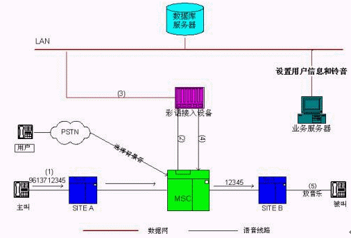 2. MSC接收到本呼叫后,把該呼叫路由到彩話(huà)接入服務(wù)器;