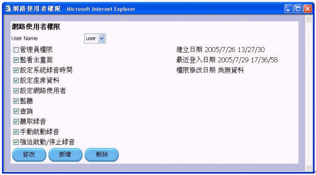 使用者權(quán)限:可在線創(chuàng)建新用戶,并可設(shè)定多級(jí)權(quán)限。