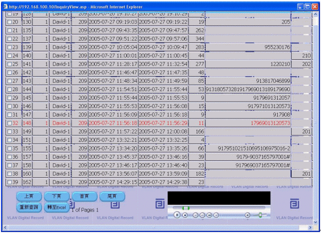 - 各軌道的實(shí)時(shí)狀態(tài)包括錄音狀態(tài)(錄音中、待命中)、錄音開(kāi)始時(shí)間、錄音結(jié)束時(shí)間、錄音長(zhǎng)度、撥號(hào)碼、Caller ID(DTMF或FSK皆可)、模擬線路狀態(tài)等皆能實(shí)時(shí)顯示。