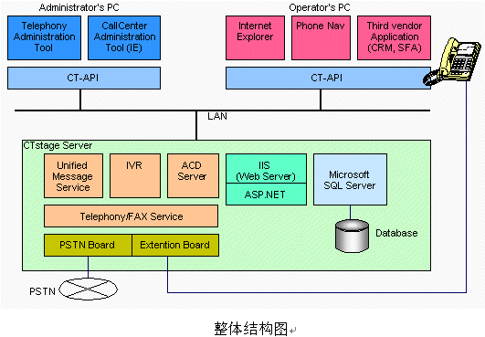 隨著經(jīng)營環(huán)境和企業(yè)環(huán)境的日益激化,作為新時代的信息策略,計算機電話集成(CTI)也由于投資小效益大而倍受注目。沖電氣公司的CTstage實現(xiàn)最先端的多媒體通信的UnPBX(在服務(wù)器中加插電話板卡,以單臺計算機實現(xiàn)PBX功能的系統(tǒng))型的開放式CTI系統(tǒng)。在一臺PC服務(wù)器上實現(xiàn)IVR和ACD功能、內(nèi)線電話控制、ACD監(jiān)視器等呼叫中心所需要的功能,成為真正意義上的UnPBX呼叫中心。先進(jìn)的CTI的解決方案將作為企業(yè)的經(jīng)營策略,迅速提高適應(yīng)市場的能力。
