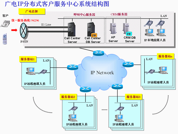 充分利用廣電已有的優(yōu)秀的寬帶網(wǎng)絡(luò)條件,建立IP分布式服務(wù)模式,以城市的各廣電服務(wù)站為單位,實現(xiàn)本服務(wù)站覆蓋范圍內(nèi)的用戶優(yōu)先由本服務(wù)站座席人員服務(wù)的本地化服務(wù),一方面解決了總部集中服務(wù)的場地、交通、管理等方面的壓力,另一方面本地化服務(wù)也加快了交流的有效性,提高了解決問題的效率,體現(xiàn)出廣電差異化服務(wù)的特色;