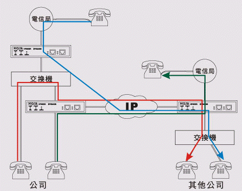 在旅館里亦可利用公司FONEMOSA遠(yuǎn)易通撥出電話及收聽語音信箱 將FONEMOSA遠(yuǎn)易通在旅館房間裝設(shè)好后,可以在旅館里免費(fèi)使用各地分公司交換機(jī)所有功能,撥接電話就像在辦公室一樣,也可以撥接其它同仁分機(jī)電話,或者聽取語音留言,舉凡各類公司交換機(jī)功能,在旅館里都一樣可以使用。(圖標(biāo): On-Net Call 網(wǎng)內(nèi)互打, 紅色線路)