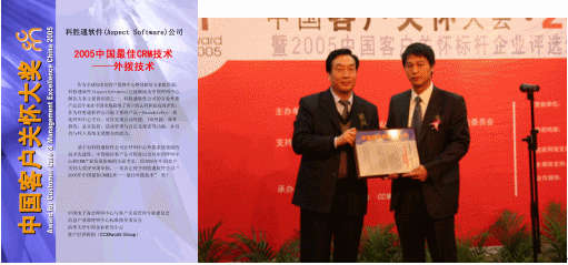 CALL CENTER & CRM ASSOCIATION)頒發(fā)的"2005年中國最佳CRM技術(shù)--最佳外撥技術(shù)獎"。