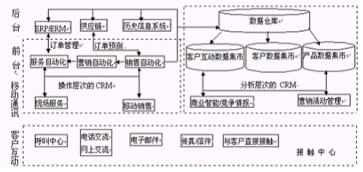在企業(yè)中對于客戶關系資源管理方面可歸納為兩個方面的問題。其一,企業(yè)的銷售、營銷和客戶服務部門難以獲得所需的客戶互動信息。其次,來自銷售、客戶服務、市場、制造、庫存等部門的信息分散在企業(yè)內(nèi),這些零散的信息使得無法對客戶有全面的了解,各部門難以在統(tǒng)一的信息的基礎上面對客戶。這需要各部門對面向客戶的各項信息和活動進行集成,組建一個以客戶為中心的企業(yè),實現(xiàn)對面向客戶的活動的全面管理。