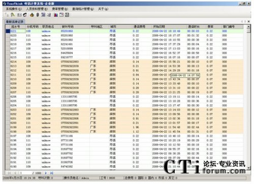 系統(tǒng)提供多種查詢條件,進(jìn)行話單明細(xì)和話單結(jié)算的統(tǒng)計,如:按分機(jī)、部門、密碼、職員名稱、出現(xiàn)號碼、通話時間范圍、通話費(fèi)用范圍、制定主叫、制定被叫、不同的通話類型(國內(nèi)長途、國際長途、市話、IP等)。