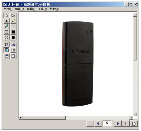坐席進(jìn)入富媒體知識庫,調(diào)出三星手機(jī),啟動(dòng)電子白板,將這個(gè)畫面推送給客戶。