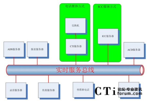 從上圖可以看出,通過(guò)實(shí)時(shí)服務(wù)總線,電話媒體方式和ICC媒體方式與其他服務(wù)的調(diào)用關(guān)系保持一致即可:
