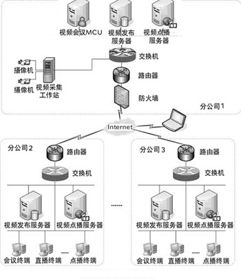 旺城國(guó)際各下屬單位都已于1999年建設(shè)好公司內(nèi)部局域網(wǎng),并且都有10M公網(wǎng)出口。旺城國(guó)際希望借助視頻會(huì)議幫助協(xié)調(diào)解決日前較為突出的營(yíng)運(yùn)問題,同時(shí)能將會(huì)議現(xiàn)場(chǎng)的視頻直播到公網(wǎng)上,供所有單位職工(需有權(quán)限)觀看多方開會(huì)的現(xiàn)場(chǎng),并錄制成MPEG-4格式的文件,放置在公司內(nèi)部局域網(wǎng)上,作為會(huì)議記錄存檔,供所有員工點(diǎn)播。具體要求如下: