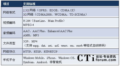 不同的終端之間處理能力有很大區(qū)別,所支持的協(xié)議也各不相同,流媒體業(yè)務(wù)必須支持所有類型的流媒體終端并具備以下功能: