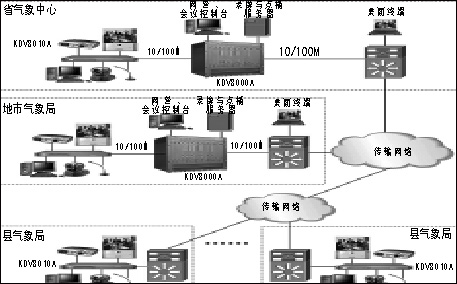 每個縣氣象局各部署一臺KDV8010A高清晰視頻會議終端,通過以太網(wǎng)接入到上級地市氣象局的KDV8000A多點(diǎn)控制單元。