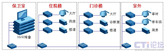 住院樓監(jiān)控點(diǎn)主要位于樓道、藥房和大廳,樓道監(jiān)控是為了實(shí)現(xiàn)各科室管理人員實(shí)時(shí)監(jiān)看樓道臨時(shí)病床,便于醫(yī)務(wù)繁忙時(shí)調(diào)配工作人員,從而保證病患能及時(shí)得到醫(yī)護(hù)服務(wù),而藥房監(jiān)控則是為監(jiān)看工作人員的業(yè)務(wù)操作和服務(wù)態(tài)度,同時(shí)可調(diào)看錄像以協(xié)助解決服務(wù)糾紛。門診樓監(jiān)控點(diǎn)主要位于診斷室、掛號窗口等處,其監(jiān)控需求與藥房監(jiān)控相似,用于監(jiān)看醫(yī)護(hù)工作人員的服務(wù)態(tài)度和業(yè)務(wù)規(guī)范。