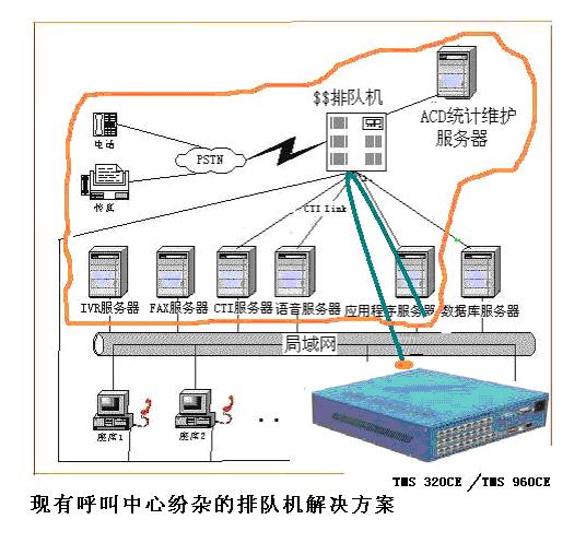除AVAYA外,目前所有的傳統(tǒng)交換機(jī),都只是個PBX,用戶既不能編程,也沒可編程的CTI技術(shù),只承擔(dān)了系統(tǒng)中一個很小的排隊功能(ACD),該解決方案的關(guān)鍵任務(wù)仍然由語音卡+工控機(jī)的平臺來完成:IVR、CTI、FAX、錄音等系統(tǒng)的幾乎全部主要功能,因此無論從成本上還是技術(shù)的領(lǐng)先性、可靠性和穩(wěn)定性,可擴(kuò)展性和可維護(hù)性上,絕不是先進(jìn)的解決方案,而只是基于品牌的導(dǎo)向;而對于中小企業(yè),更多地去關(guān)心產(chǎn)品的適用性,而根本耗不起品牌。因此,從上圖可分析,傳統(tǒng)排隊機(jī)的解決方案本身很落后,性價比也很低。