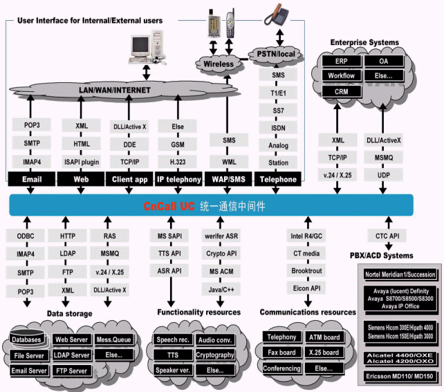 華呼UC統(tǒng)一通信平臺(tái)是通用的通信開(kāi)發(fā)平臺(tái),提供功能強(qiáng)大而又迅速的開(kāi)發(fā)技術(shù)來(lái)建立復(fù)雜的企業(yè)通信服務(wù)。這些技術(shù)包括CTI、SoftACD、IVR、傳真、手機(jī)SMS、固定電話(huà)SMS、Paging、各類(lèi)數(shù)據(jù)通信、電子郵件、VXML、HTML、ASR、TTS、WAP、數(shù)據(jù)庫(kù)接入、語(yǔ)音證實(shí)和加密等。提供標(biāo)準(zhǔn)接口讓我們方便的與企業(yè)CRM\ERP\OA等應(yīng)用系統(tǒng)連接。華呼UC統(tǒng)一通信平臺(tái)提供方便的圖形開(kāi)發(fā)環(huán)境,無(wú)須學(xué)習(xí)硬件或軟件的API接口,把最好的技術(shù),產(chǎn)品和工業(yè)標(biāo)準(zhǔn)集成到一個(gè)面向?qū)ο蟮恼Z(yǔ)言環(huán)境中,提供給開(kāi)發(fā)人員各種構(gòu)件,創(chuàng)建應(yīng)用程序的過(guò)程只是按流程圖的方式把不同的構(gòu)件塊聯(lián)在一起,沒(méi)有用戶(hù)數(shù)或端口數(shù)的限制,系統(tǒng)可以隨應(yīng)用相應(yīng)擴(kuò)容。