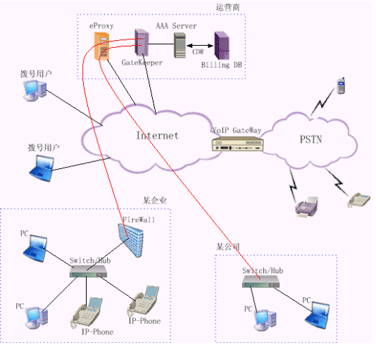 運營級IP電話解決方案為運營商提供一種可靠經(jīng)濟的VoIP接入平臺與VoIP骨干網(wǎng)互連,這種方式可以充分利用網(wǎng)絡(luò)資源,降低用戶服務(wù)價格,提高運營商的競爭力。它為用戶提供了多種業(yè)務(wù)類型,除了可以實現(xiàn)任意兩點間的PC互通外,還可以實現(xiàn)PC通過VoIP網(wǎng)關(guān)與PSTN用戶間的互聯(lián)互通。
