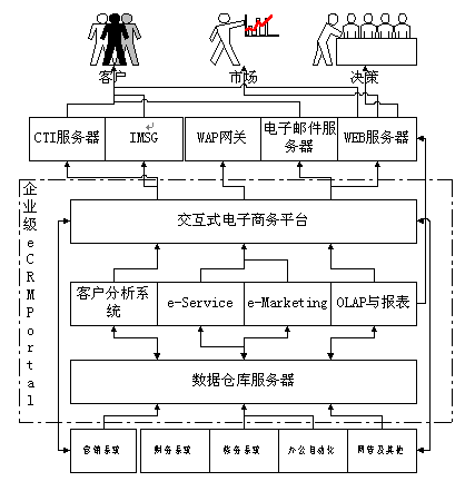 從易虹eCRM解決方案可以看出,易虹eCRM系統(tǒng)是一個(gè)端到端的解決方案。為客戶提供了,從信息的搜集、整理、客戶的分析與市場機(jī)會(huì)發(fā)現(xiàn)到抓住市場機(jī)會(huì)的客戶交互過程的全套的解決方案。
