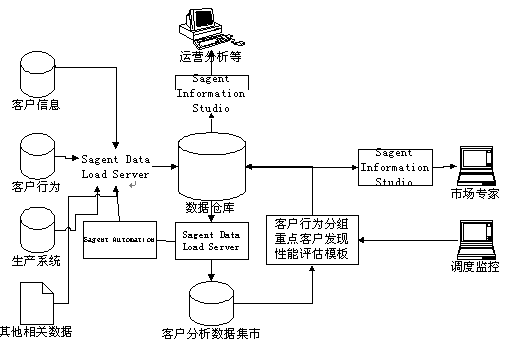 易虹eCRM解決方案,采用Sagent Real Time e-Business Solution作為數(shù)據(jù)倉庫建設(shè)平臺。Sagent Solution提供了數(shù)據(jù)倉庫建設(shè)、數(shù)據(jù)分析和數(shù)據(jù)倉庫管理的全套的工具。利用這些工具,用戶可以快速地實現(xiàn)數(shù)據(jù)倉庫和客戶分析系統(tǒng)。