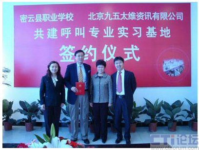 CTI論壇(ctiforum)04月30日消息: 近日,密云縣職業(yè)學(xué)校與北京九五太維資訊有限公司校企合作共建呼叫專業(yè)實(shí)習(xí)基地簽約儀式在密云縣職業(yè)學(xué)校隆重舉行,市教委職成處處長(zhǎng)李敏,縣委常委副縣長(zhǎng)王春林、副縣長(zhǎng)錢福生、副縣長(zhǎng)徐芳出席簽約儀式并發(fā)表了講話。密云縣教委主任李鐘勤,北京九五太維資訊有限公司董事長(zhǎng)汪遠(yuǎn),首席執(zhí)行官李寶民及其培訓(xùn)師團(tuán)隊(duì),密云縣經(jīng)濟(jì)開發(fā)區(qū)總公司及部分入?yún)^(qū)呼叫企業(yè)出席了簽約儀式。在簽約儀式上,密云縣教委主任李鐘勤向九五太維公司首席執(zhí)行官李寶民博士頒發(fā)了聘書,聘請(qǐng)李寶民博士為密云縣職業(yè)學(xué)校名譽(yù)校長(zhǎng)。