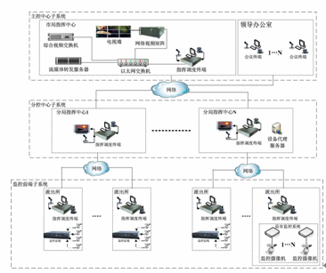 系統(tǒng)采用基于網(wǎng)絡(luò)的分布式控制結(jié)構(gòu),通過(guò)公安專網(wǎng)連接市局、縣/區(qū)分局、派出所三級(jí)單位,分為主控中心子系統(tǒng)、分控中心子系統(tǒng)、監(jiān)控前端子系統(tǒng)。結(jié)構(gòu)如下圖:
