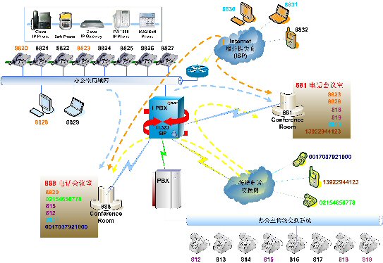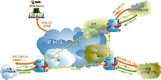 eTalk® iPBX可同時或者分別接受來自一個或者多個傳統(tǒng)電信運營商和虛擬運營商提供的語音服務(wù)。甚至可以在多臺i PBX之間實現(xiàn)零成本互通,合理利用各地PSTN資源,以降低企業(yè)通訊成本。