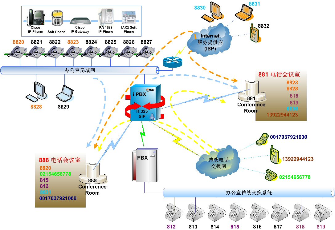 2、eTalk® iPBX與傳統(tǒng)交換機的組網(wǎng)