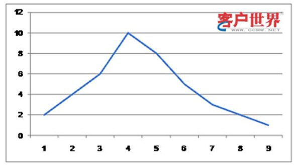 首先我們看到常態(tài)圖對(duì)呼叫中心分析的運(yùn)用。利用最小方差管理法時(shí),經(jīng)常要制作常態(tài)圖來(lái)進(jìn)行分析。常態(tài)圖其實(shí)是一張很簡(jiǎn)單的圖,例如你統(tǒng)計(jì)了你同事每天到公司上班所需的時(shí)間:5分鐘之內(nèi)的,有2個(gè);10分鐘的有4個(gè);15分鐘的有6個(gè);20分鐘的有10個(gè);25分鐘的有8個(gè);30分鐘的有5個(gè);35分鐘的有3個(gè);40分鐘的有2個(gè);超過(guò)40分鐘的有1個(gè)。這時(shí)你畫一張常態(tài)圖,就會(huì)得到下面的圖(縱坐標(biāo)代表人數(shù);橫坐標(biāo)代表所花時(shí)間):