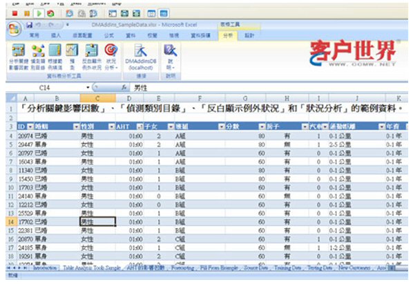 前面談到的Excel功能,都是在Excel 2003可以輕易實(shí)現(xiàn)的,但在Excel 2007,有了一個(gè)重大的突破,就是提供了一系列的數(shù)據(jù)挖掘工具。微軟把本來(lái)屬于非常高深的數(shù)據(jù)挖掘功能,做到了Excel里面,最棒的是,你完全不必懂?dāng)?shù)據(jù)挖掘,也不必懂類似MS SQL這種讓人一聽(tīng)就頭昏的數(shù)據(jù)庫(kù)管理。