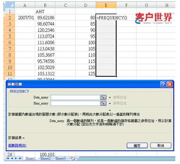 這就是微軟產(chǎn)品最特別的地方:你不能按“確定”這個(gè)鍵,如果按“確定”,你就死定了!筆者曾經(jīng)為這件事,研究了好久,整個(gè)Help的幫助畫面,也沒(méi)說(shuō)要怎么做,終于在一個(gè)地方找到:必須同時(shí)按三個(gè)鍵:Shift、Ctrl和回車(Enter)。同時(shí)按下這三個(gè)鍵,就會(huì)得到你要的頻次,如下圖的E這個(gè)數(shù)列。