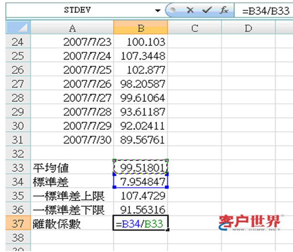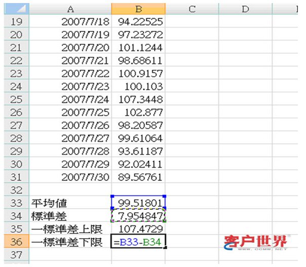圖說(shuō):B35是一個(gè)標(biāo)準(zhǔn)差上限,而B36是一個(gè)標(biāo)準(zhǔn)差下限