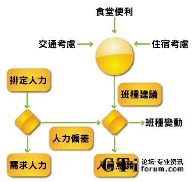 - 進行用餐、小休、加班的人員調度,并于正式調度前,預先模擬調度的結果。